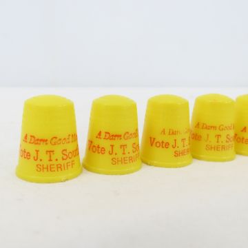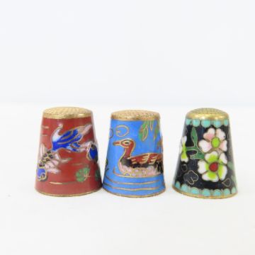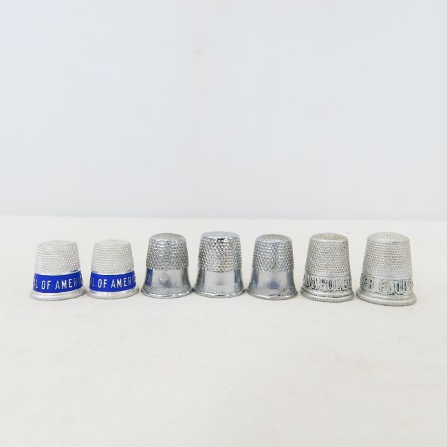 Vintage Thimble Collection & Display Cases - 1 Sterling Silver, 3 Cloissone, and a group of advertising and misc thimbles, Wood Display case measures 9.5x8.75x2" - glass slides out, Small glass case measures 4x4x2.5". LOT SIZE 12X12X7" 5 LB Photos are part of description. (Live Auctioneers only shows a max of 20 photos). Please ask questions and read terms & conditions before bidding.