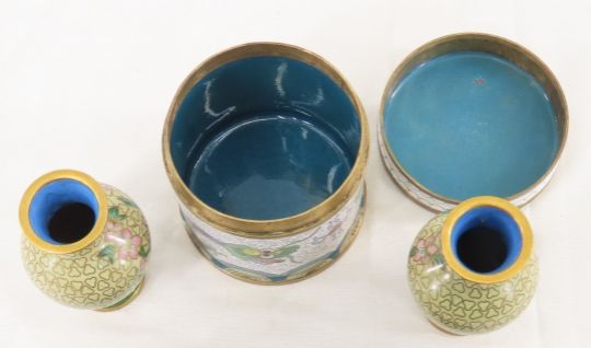 Cloisonne vases, plates, candlestick & more - Cigarette holder & ashtray set. Lot Size 14x14x14" 8lb Photos are part of description. (Live Auctioneers only shows a max of 20 photos). Please ask questions and read terms & conditions before bidding.