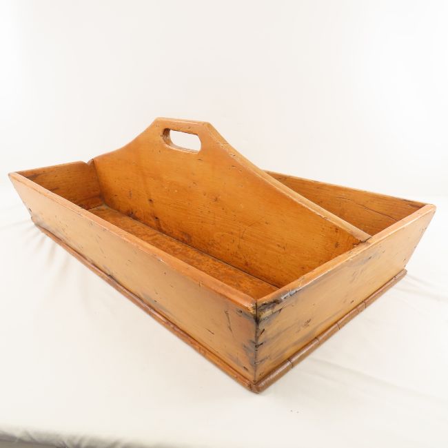 Antique Wood Hand Crafted Divided Carrying Tray - Lot size 27x15x10", 6.8 lbs Photos are part of description. (Live Auctioneers only shows a max of 20 photos). Please ask questions and read terms & conditions before bidding.