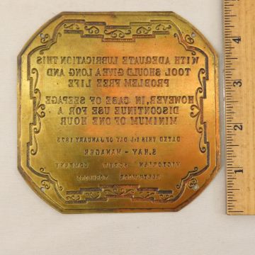 Vintage Brass Machine ID Plates, Vilter Mfg & More - Largest: 8.5" long. The Vilter Mfg Co. Engineers and Machinists, Milwaukee, Wis., White Gasoline Engine, Globe Iron Works Co., Minneapolis, MN, Victorian Screw Company, Reeth Moor, Yorkshire. Lot Size: 9 x 5 x 2:,2 lbs Photos are part of description. (Live Auctioneers only shows a max of 20 photos). Please ask questions and read terms & conditions before bidding.