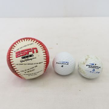 Ed Mathews Bat & Other Sport Collectibles - H & B No. 9 LEADER Ed Mathews Model 34" Wooden Baseball Bat, "BASEBALL" cut out for frame, vintage football helmet, vintage baseball cake toppers (some are broken)vintage kids batting helmet, golfballs, vintage medals and more. 32x14x14", 8 lbs Photos are part of description. (Live Auctioneers only shows a max of 20 photos). Please ask questions and read terms & conditions before bidding.