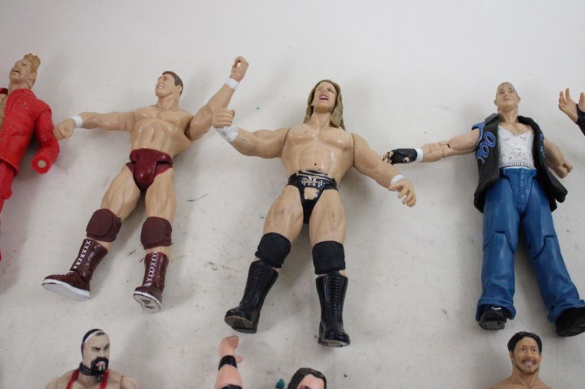 10 WWE WWF Titan Tron Wrestler Figures JAKKS - Jakks Pacific TOO COOL missing forearm and Hot Ty missing a hand. Lot Size 10" x 10" x 8". 3 Lbs. Photos are part of description (Live Auctioneers only displays a max of 20 photos -check other platforms for all photos). Please ask questions and read terms & conditions before bidding.