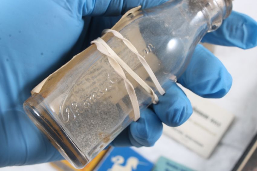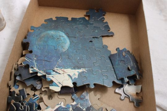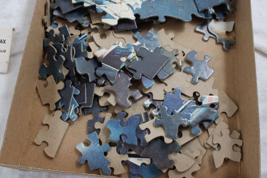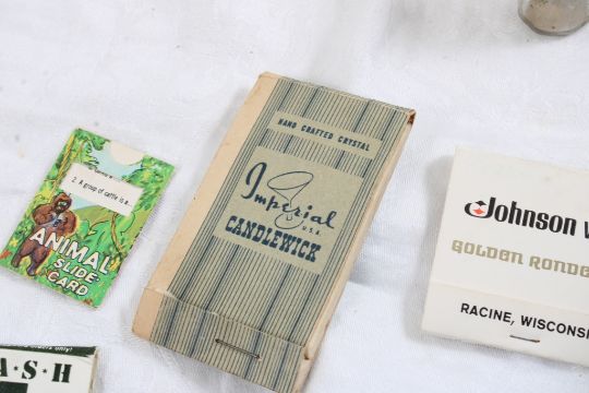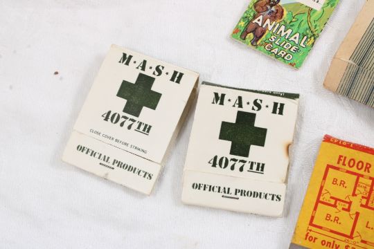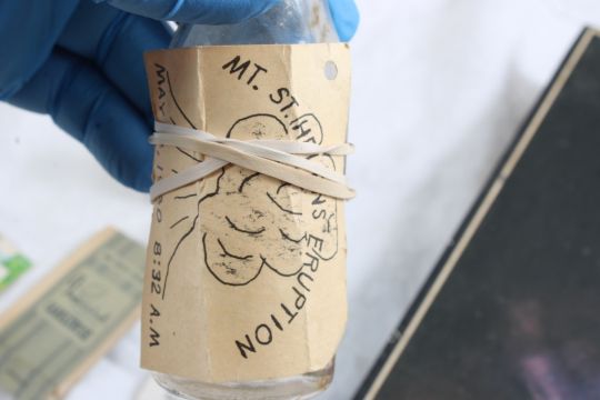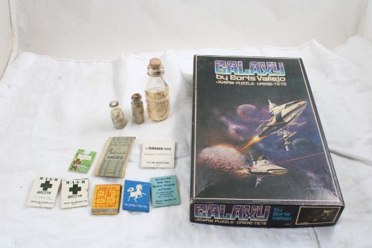 Puzzle, Mt. St Helens Ash, Bottles, Matchbooks - Galaxy Jigsaw Puzzle, Thomas Edison Battery Oil Bottle with 1980 Mount St. Helen's Volcanic Ash Sample & other bottles, Old Matchbooks including MASH 4077th and others. Lot Size 13" x 8" x 5". 2 Lbs. Photos are part of description (Live Auctioneers only displays a max of 20 photos -check other platforms for all photos). Please ask questions and read terms & conditions before bidding.