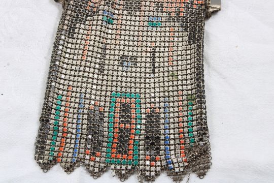 Art Deco Whiting Davis Flapper Chainmail Purse 7" - Orange Black Grey. Lot Size 7" x 5" x 1". 1 lb. Photos are part of description (Live Auctioneers only displays a max of 20 photos -check other platforms for all photos). Please ask questions and read terms & conditions before bidding.