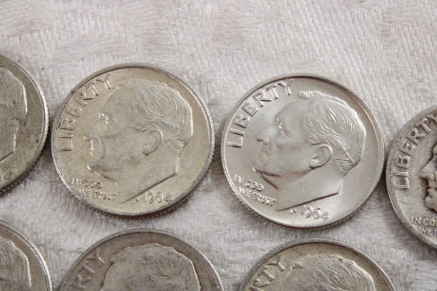10 Roosevelt Silver Dimes - Lot Size 3" x 2" x 1". 1 Lb. Photos are part of description (Live Auctioneers only displays a max of 20 photos -check other platforms for all photos). Please ask questions and read terms & conditions before bidding.