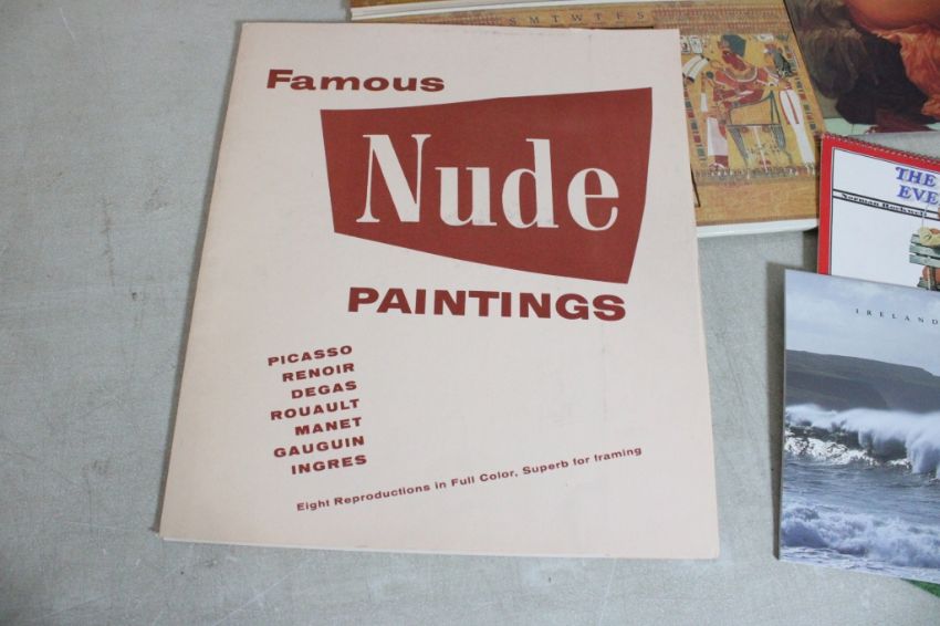 Marilyn Monroe Records and Prints, Nude Paintings - 2 Marilyn Monroe LP's, Marilyn Monroe Print Portfolio Unopened (sealed), 8 Famous Nude Paintings Louvre, Ancient Egypt Perpetual Calendar & Star Trek other Collectible calendars. Lot Size 17" x 15" x 5". 10 Lbs. Photos are part of description (Live Auctioneers only displays a max of 20 photos -check other platforms for all photos). Please ask questions and read terms & conditions before bidding.