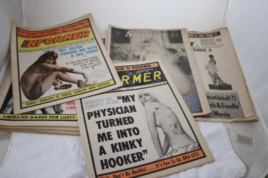 14 1960's and 1970's Sensational Publications - 7 1970 & 1971 Rampage, 5 1969 & 1970 National Informer, 1 1971 National Spotlite and 1 1969 National Insider publications. Lot Size 16" x 12" x 2". 2 Lbs. Photos are part of description (Live Auctioneers only displays a max of 20 photos -check other platforms for all photos). Please ask questions and read terms & conditions before bidding.