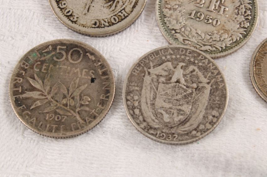 5 Antique Foreign Silver Coins - 1944 Netherlands 10 Cent Silver Coin, 1950 Switzerland 1/2 Frank Helvetia Silver Coin, 1903 Hong Kong 10 Cent Silver Coin, 1907 Belgium 50 Centimes Silver Coin, 1932 Panama Balboa Silver Coin, Photos are part of description (Live Auctioneers only displays a max of 20 photos -check other platforms for all photos). Please ask questions and read terms & conditions before bidding.