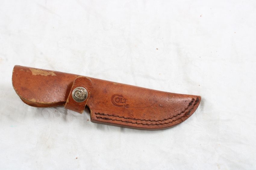 Colt Fixed Blade Knife in Sheath - Lot Size 10" x 3" x 3". 1 Lb. Photos are part of description (Live Auctioneers only displays a max of 20 photos -check other platforms for all photos). Please ask questions and read terms & conditions before bidding.