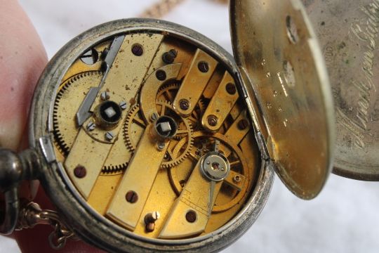 Key Wind Pocket Watch & 2 Winchester Pocket Knives - .800 Coin Silver Imerslund Elverum Pocket Watch with Gold tone Chain Fob, Winchester 2 piece Pocket Knife Set. Lot Size 6" x 4" x 1". 2 Lbs. Photos are part of description (Live Auctioneers only displays a max of 20 photos -check other platforms for all photos). Please ask questions and read terms & conditions before bidding.