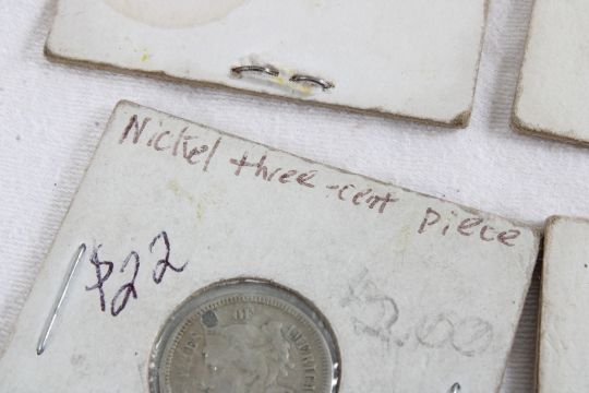 2 1853 United States Seated Liberty Silver Coins - 1 Seated Liberty United States One Dime Silver Coin, 1 Seated Liberty United States Half Dime Silver Coin and Some extremely Old Foreign Coins & Tokens that are not silver. Lot Size 3" x 3" x 3". 1 Lb. Photos are part of description (Live Auctioneers only displays a max of 20 photos -check other platforms for all photos). Please ask questions and read terms & conditions before bidding.
