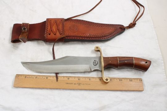 Fixed Blade Colt Bowie Knife in Sheath - Lot Size 14" x 5" x 3". 2 Lbs. Photos are part of description (Live Auctioneers only displays a max of 20 photos -check other platforms for all photos). Please ask questions and read terms & conditions before bidding.