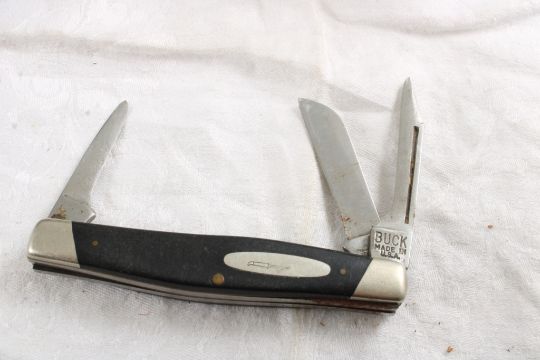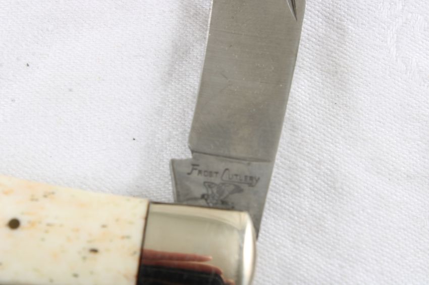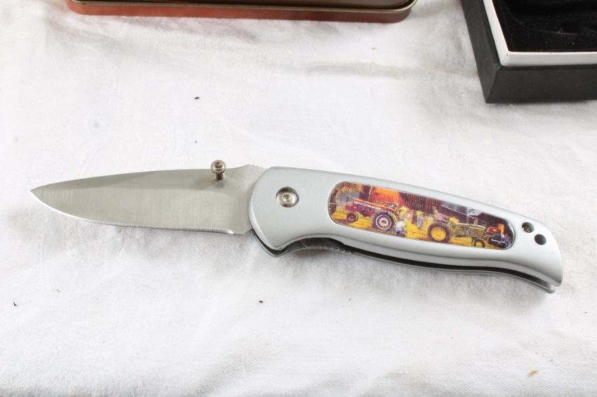 5 Folding Knives Buck 3 Blade, Frost Cutlery, - Tractor Design with Fob, Folding Lock Blade with Buffalo in Tin. Lot Size 6" x 4" x 4". 2 Lbs. Photos are part of description (Live Auctioneers only displays a max of 20 photos -check other platforms for all photos). Please ask questions and read terms & conditions before bidding.