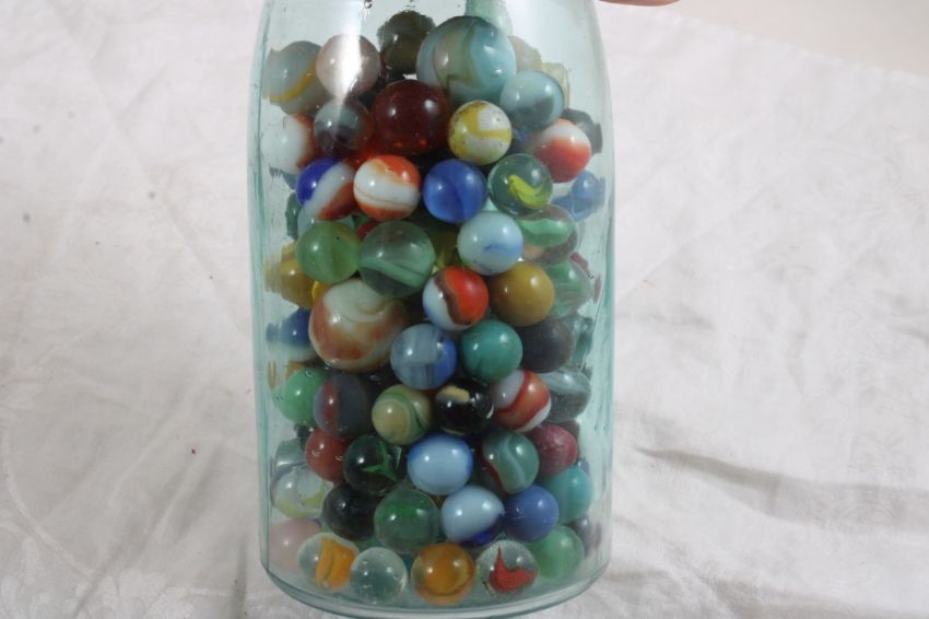 2 Quart Canning Jars Full of Vintage Marbles - Lot Size 10" x 10" x 10". 8 Lbs. Photos are part of description (Live Auctioneers only displays a max of 20 photos -check other platforms for all photos). Please ask questions and read terms & conditions before bidding.