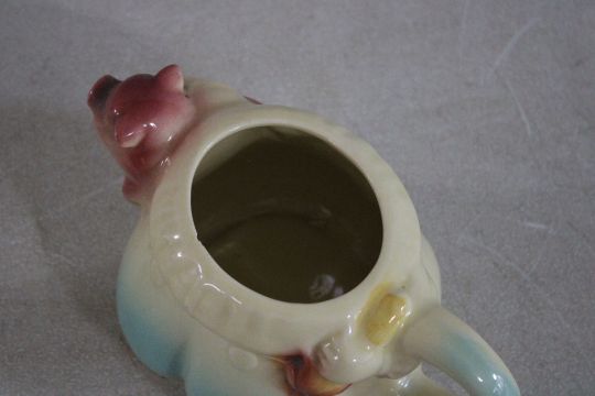 2 Shawnee Teapots & 1 Shawnee Bo Peep Pitcher - Tom Tom Piper's Son Teapot by Shawnee (chip on inside rim of teapot), Granny Ann Teapot by Shawnee (has a chip on the inside rim of the lid) and Shawnee Bo Peep Pitcher. Lot Size 13" x 13" x 10". 7 Lbs. Photos are part of description (Live Auctioneers only displays a max of 20 photos -check other platforms for all photos). Please ask questions and read terms & conditions before bidding.