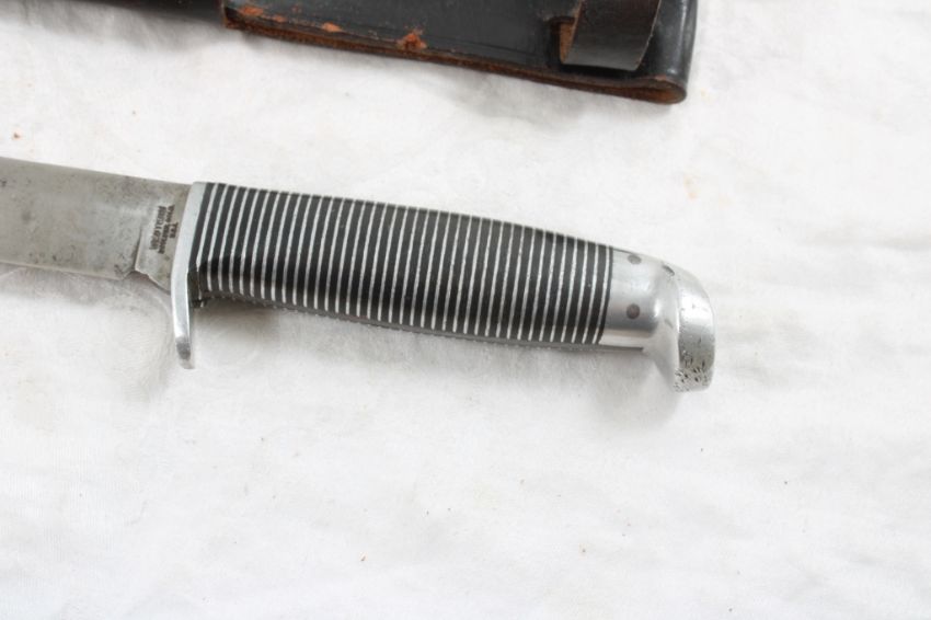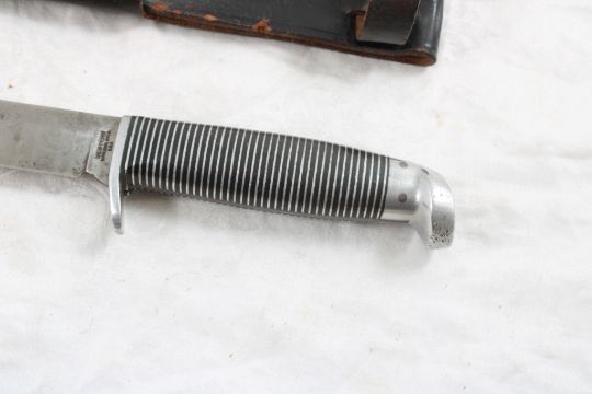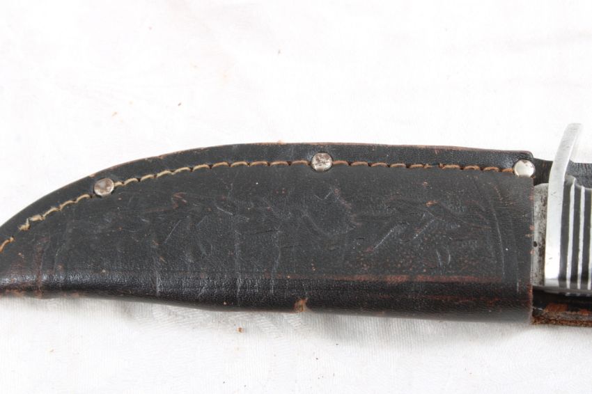 Western Fixed Blade Knife with Sheath - Lot Size 10" x 3" x 3". 1 Lb. Photos are part of description (Live Auctioneers only displays a max of 20 photos -check other platforms for all photos). Please ask questions and read terms & conditions before bidding.