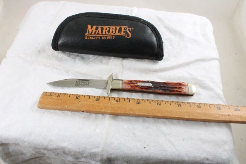 Marbles Folding Hunting Lock Blade Knife in Case - Lot Size 7" x 3" x 2". 1 Lb. Photos are part of description (Live Auctioneers only displays a max of 20 photos -check other platforms for all photos). Please ask questions and read terms & conditions before bidding.