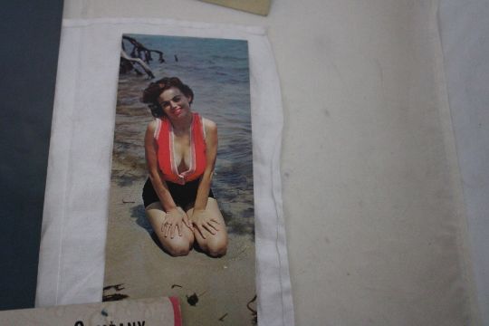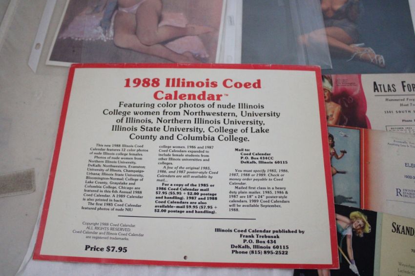 Risque Pin Up Postcards, Ink Blotters, Calendar - Plus a Print. Lot Size 11" x 9" x 2". 1 Lb. Photos are part of description (Live Auctioneers only displays a max of 20 photos -check other platforms for all photos). Please ask questions and read terms & conditions before bidding.