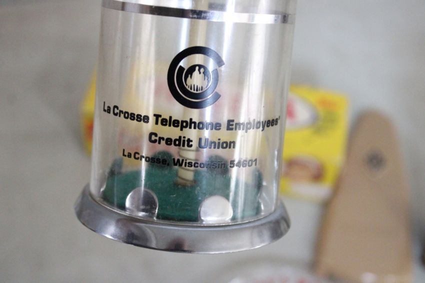 Security Camera, Metronome, Sun Visor Mirror, Bank - Smart Pan Wireless Security Camera New in Box, Wittner Metronome, Automobile Travel Service Record Sun Visor Mirror, Velveeta Cheese 2 Lb. Advertising Box, 2 Hatchet Cigar Box Openers, La Crosse Wisconsin TelephoneEmployees Credit Union Bank with Padlock & Key, Stanhome Get Acquainted Safety Razor in Mailer Box and Case, Devroy's Motel, Billiards, Bowling & Bar Advertising Ashtray Green Bay Wisconsin. Lot Size 16.5" x 12.5" x 4". 4 Lbs. Photos are part of description (Live Auctioneers only displays a max of 20 photos -check other platforms for all photos). Please ask questions and read terms & conditions before bidding.