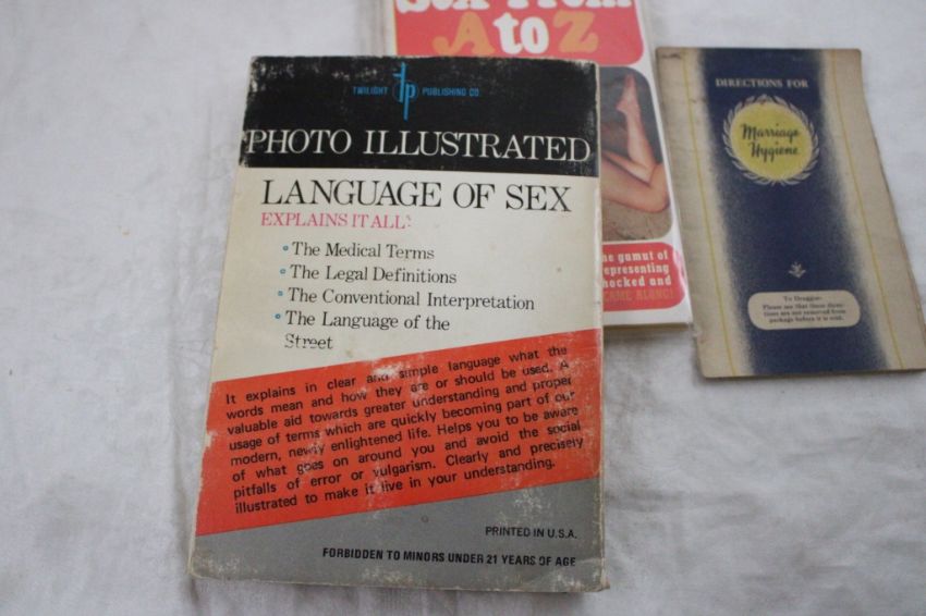 Language of Sex & 2 Other Books - 1967 Sex From A to Z, 1970 Photo Illustrated Language of Sex, 1939 Marriage Hygiene. Lot Size 8" x 6" x 2". 1 Lb. Photos are part of description (Live Auctioneers only displays a max of 20 photos -check other platforms for all photos). Please ask questions and read terms & conditions before bidding.