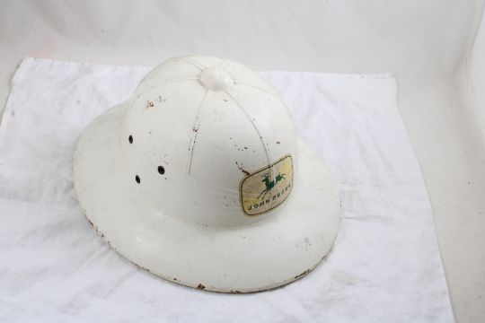 Vintage John Deere Fiber Pith Safari Hat - Lot Size 14" x 11.5" x 8". 1 Lb. Photos are part of description (Live Auctioneers only displays a max of 20 photos -check other platforms for all photos). Please ask questions and read terms & conditions before bidding.