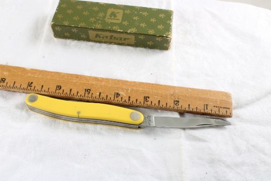 KaBar 3 Blade Folding Knife #1097 in Box - Lot Size 5" x 2" x 2". l Lb. Photos are part of description (Live Auctioneers only displays a max of 20 photos -check other platforms for all photos). Please ask questions and read terms & conditions before bidding.
