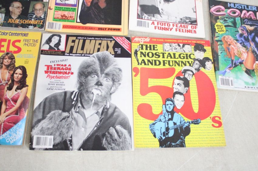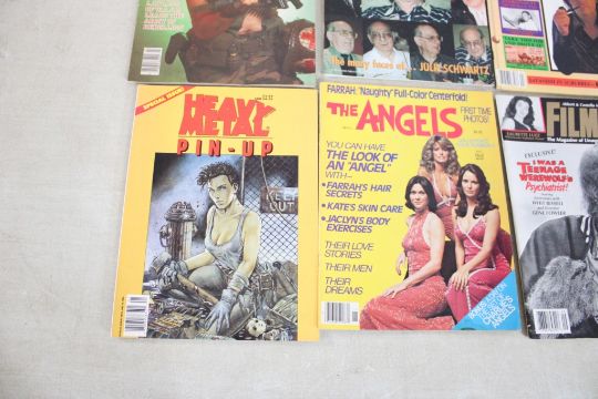 9 Magazines 1980's & 1990's Some Pin-Ups - Catastrophe, Argosy, National Scoop, Comic Book Marketplace, The Angels (Charlies), Filmfax, Kerrang, Hustler Comics, Heavy Metal Pin-Up. Lot Size 8" x 13" x 3". 4 Lbs. Photos are part of description (Live Auctioneers only displays a max of 20 photos -check other platforms for all photos). Please ask questions and read terms & conditions before bidding.