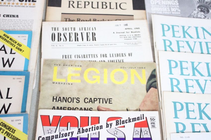 Vintage Magazines 1937 Science & Mechanics Zephyr - Train, The Economist, Peking Reviews, National Reviews, The New Republic 1960's and more. Lot Size 13" x 10" x 4". 7 Lbs. Photos are part of description (Live Auctioneers only displays a max of 20 photos -check other platforms for all photos). Please ask questions and read terms & conditions before bidding.