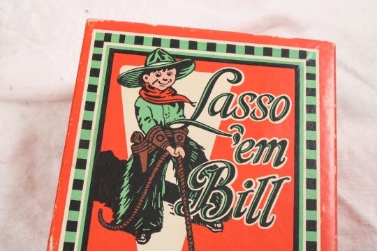 Lasso Em Bill & Cowboy Boots Children's Boxes Only - Vintage Western mid-century Lasso 'Em Bill Cowboy Spurs and Genuine Cowboy Boots Children's Advertising Boxes Only. Lot Size 8" x 9" x 5". 1 Lb. Photos are part of description (Live Auctioneers only displays a max of 20 photos -check other platforms for all photos). Please ask questions and read terms & conditions before bidding.