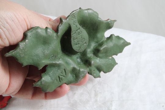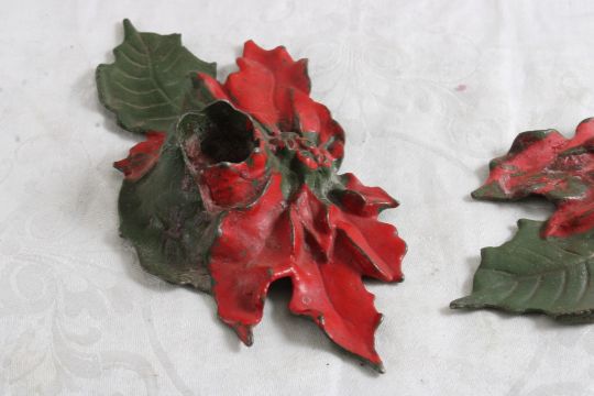 2 Cast Iron Poinsettia Candleholders Date 1922 - Both dated 10-31-1922. Lot Size 6" x 6" x 3". 1 Lb. Photos are part of description (Live Auctioneers only displays a max of 20 photos -check other platforms for all photos). Please ask questions and read terms & conditions before bidding.