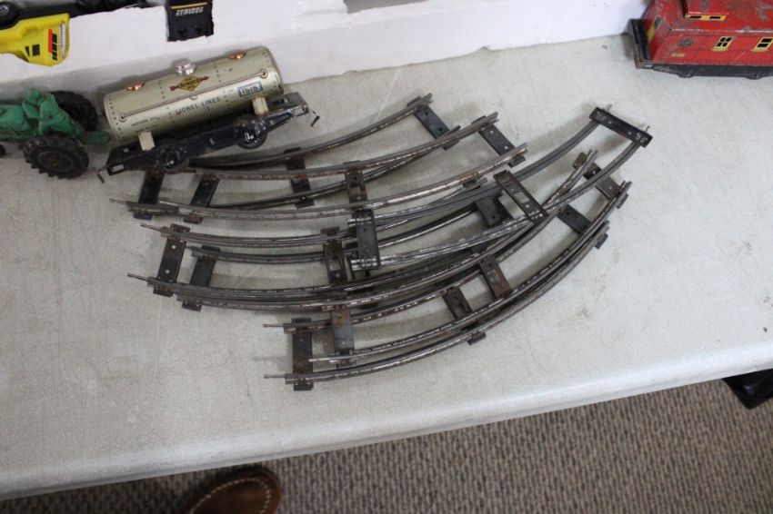 Road Riggs Set, Train Cars, Track, Marx Figures - Battery Operated Road Riggs Boxed Set Works, Train Cars and Train Track, Marx, Timee & Other Figures including Cowboys, Space Men, Baseball Pitcher, Soldiers. Lot Size 30" x 22" x 4". 5 Lbs. Photos are part of description (Live Auctioneers only displays a max of 20 photos -check other platforms for all photos). Please ask questions and read terms & conditions before bidding.