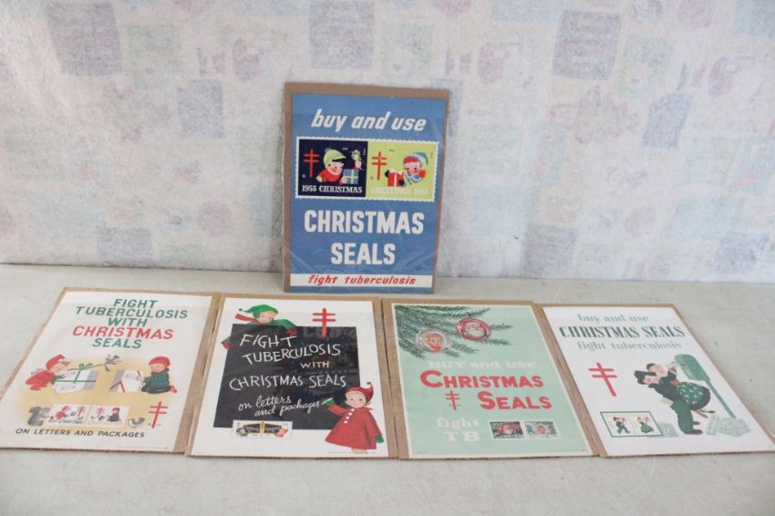 5 Mid-Century Christmas Seal Advertising Posters - 1955, 1956, 1957, 1958 & 1959 Christmas Seal Advertising Posters. Lot Size 16" x 12" x 2". 1 Lb. Photos are part of description (Live Auctioneers only displays a max of 20 photos -check other platforms for all photos). Please ask questions and read terms & conditions before bidding.