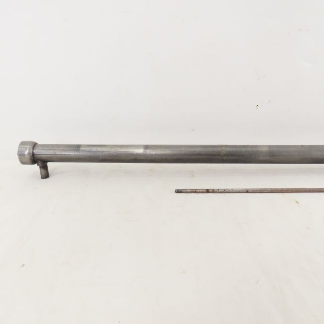 GEW 88 Barrel Jacket, Cleaning Rod & Cut Stock - 28.75" barrel jacket with front sight and SN 3362, 16 3/8" cleaning rod, cut stock is 22" with marks on right side, lug & metal butt plate. center screw to center screw is 9". Lot size: 29x6x3", 3 lbs All information and photos are intended to be as accurate as possible, but errors are possible. No item may be returned or refused based on this information, which is provided as a service to bidders. Please read terms & conditions and ask questions before bidding.