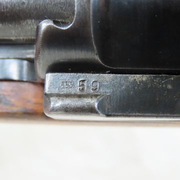 1941 byf Oberndorf K98k Mauser Rifle w/Waffenamt - SN# 8459 L, no import marks, Waffenamt. 7.92x57mm Top receiver mark: "byf 41", left side: " eagle/swastika 8459/L Mod. 98", right side: eagle/655 eagle/655 eagle/655". Barrel marked left: "eagle/swastika 8459",right side of rear sight:"eagle/WaA655 eagle/WaA655". Rear sight marked: "eagle/655 8459", slide marked "eagle/655 59". Bolt handle and group marked 1759. Trigger guard marked: "eagle/WaA655 eagle/WaA655 / 8459",floor plate marked "eagle/Waa655 8459", front screw marked "59". Front band and rear band with side sling loop marked "9452", bayonet stud marked "eagle/655 23", hooded front sight, no cleaning rod, lug marked"eagle/655", cupped metal butt plate "69536", sanded wood stock has several hard to read marks including 9442, Waffenamt on right side. Expected wear for age C&R or FFL transfer required. Please know local lawsbefore bidding. LOT SIZE: 44x6x3", 9.2 lbs All information and photos are intended to be as accurate as possible, but errors are possible. No item may be returned or refused based on this information, which is provided as a service to bidders. Please read terms & conditions and ask questions before bidding.
