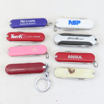 40+ Pocket Knives & Sharpening Stones - Swiss Army, Imperial, Pal Cutlery, Hooey, Keen Kutter & others. Lot Size: 10 x 8 x 5", 7 lbs All information and photos are intended to be as accurate as possible, but errors are possible. No item may be returned or refused based on this information, which is provided as a service to bidders. Please read terms & conditions and ask questions before bidding.