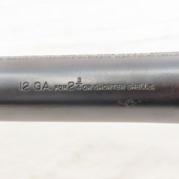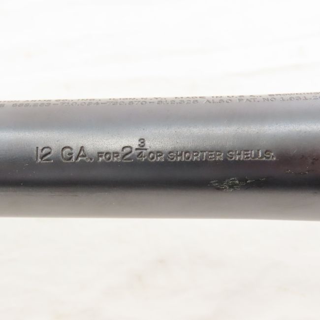 Remington Sportsman 12 GA Shotgun w/Extra Barrel - SN# 776502, 1937-47 one bird roll stamped on receiver. 30" full choke barrel with front bead sight on gun. 26" full choke barrel with Poly Choke selector included- both have same patent mark and are for 2 3/4" or shortershells. 3 shot version of model 11 long-recoil operated shotgun. Checkered wood forearm and pistol grip stock with recoil pad. With soft case in rough shape. C&R or FFL transfer required. Please know local laws before bidding. LOT SIZE: 51x6x4", 12 lbs All information and photos are intended to be as accurate as possible, but errors are possible. No item may be returned or refused based on this information, which is provided as a service to bidders. Please read terms & conditions and ask questions before bidding.