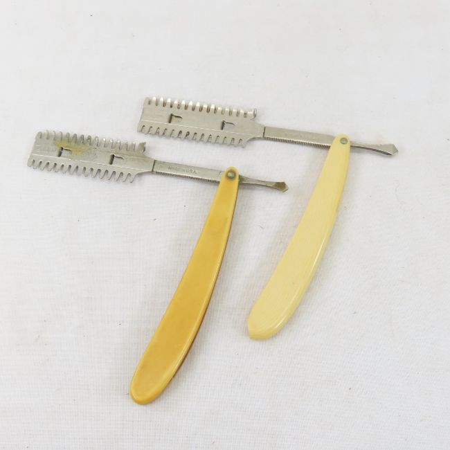 10+ Vintage Straight Razors, Frieder. Ern & Others - Imperial, Crane Brand, Frieder Ern, Empire, Erik Anton Berg, Durham Duplex & others. Lot Size: 7 x 7 x 4", 1 lb All information and photos are intended to be as accurate as possible, but errors are possible. No item may be returned or refused based on this information, which is provided as a service to bidders. Please read terms & conditions and ask questions before bidding.