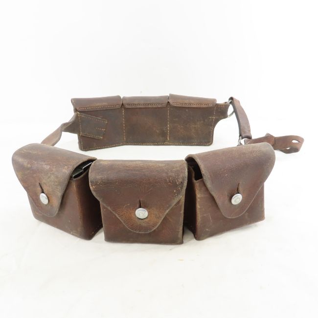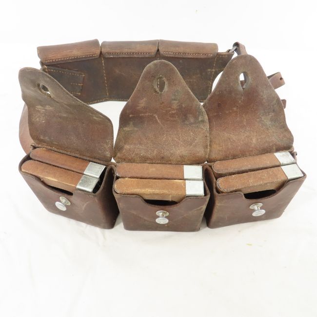 Swiss Army Cavalry leather ammo belt / 6 pouches - Maker mark is unreadable except 37. Lot Size 14x6x6" 3 LB All information and photos are intended to be as accurate as possible, but errors are possible. No item may be returned or refused based on this information, which is provided as a service to bidders. Please read terms & conditions and ask questions before bidding.