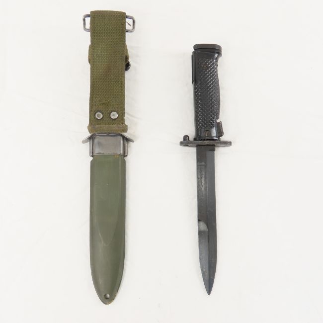 U.S. M8 Bayonet with scabbard & Frog - Lot Size 14x3x3" 5 LB All information and photos are intended to be as accurate as possible, but errors are possible. No item may be returned or refused based on this information, which is provided as a service to bidders. Please read terms & conditions and ask questions before bidding.